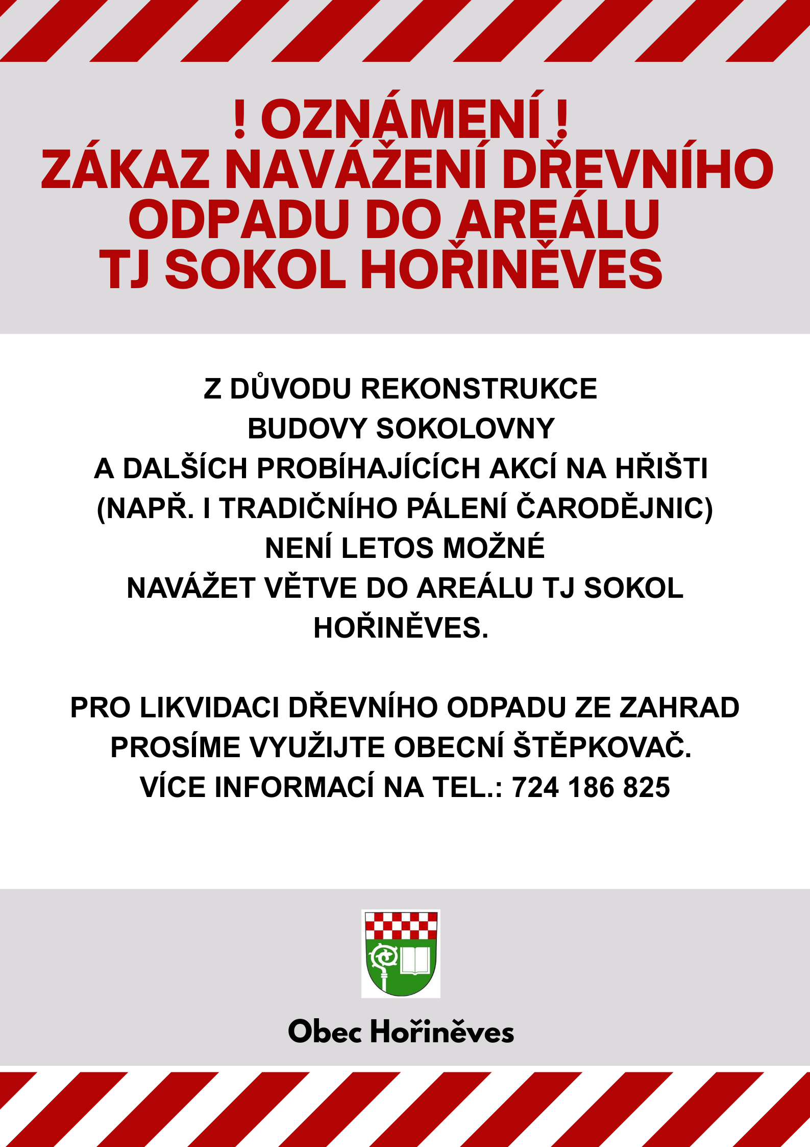 | 30.04.2026 Oznámení - zákaz navážení dřevního odpadu do areálu TJ Sokol Hořiněves | |